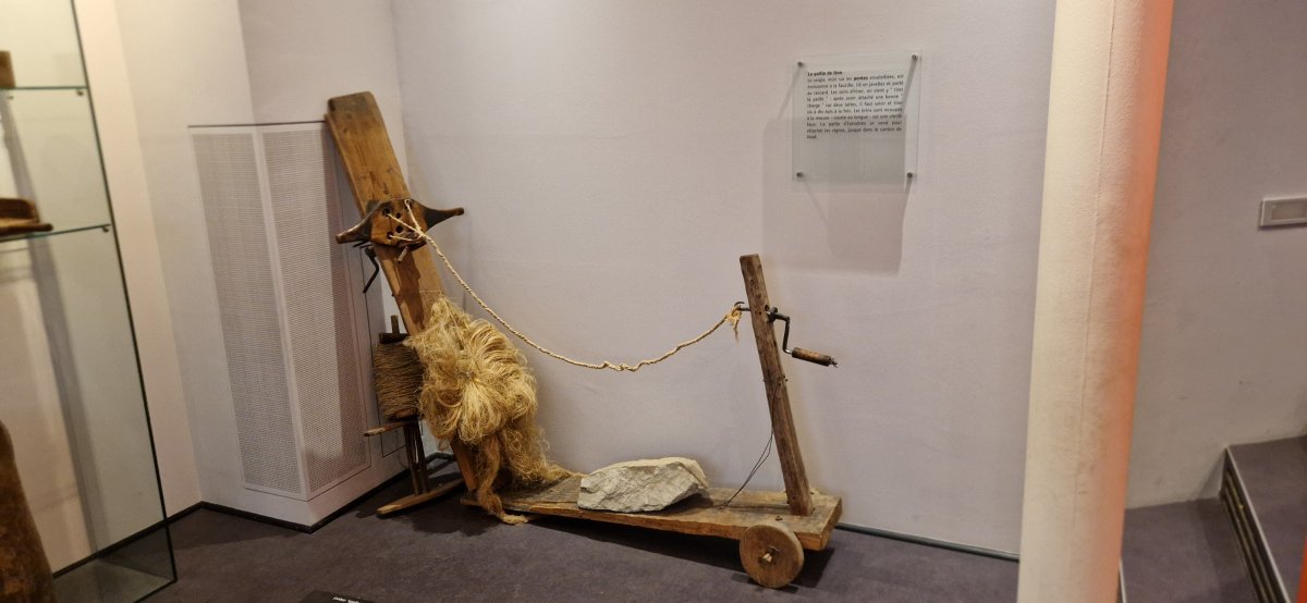 Le musée évoque à l’étage inférieur le blé pour remettre en valeur ce qui a été une vraie richesse locale. Les champs de seigle occupaient une grande partie des terres autour du village qui s’est vu qualifier de « grenier du district de Martigny ». Une particularité, une variété de seigle à la paille spécialement longue, permettait en outre de tirer un bénéfice de celle-ci. L’hiver, on passait des soirées à « tirer la paille », c’est-à-dire préparer et conditionner les brins en ballots réguliers. Ceux-ci se vendaient dans les vignobles jusque sur les bords du lac Léman. Les femmes du village s’y rendaient au printemps comme ouvrières pour les effeuilles. Il paraît que c’était plus facile d’attacher la vigne ainsi car le brin replié sur lui même tient bien plus facilement que le raphia ou les plastiques qu’il faut nouer. L’usage de la paille a disparu avec la généralisation des attaches en métal et son exploitation a cessé à Isérables au milieu du 20e siècle.